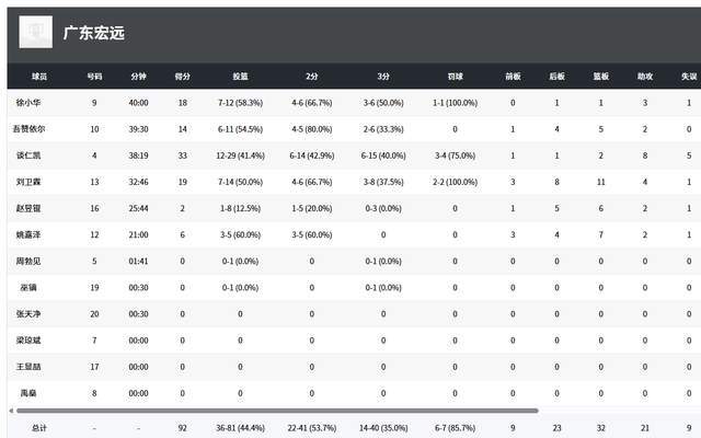 谈仁凯迎来爆发,此役29投12中,独砍33分2篮板8助攻5失误,刘卫霖19分11篮板4助攻,徐小华18分3助攻,吾赞依尔14分5篮板2助攻。